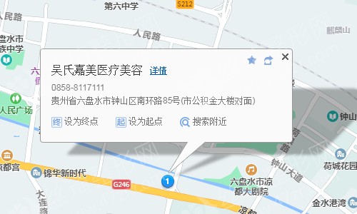 六盘水站610米向西北步行 到 水矿总医院5站乘 凉都22路 (红山社区方向) 到 凤凰综合体160米向西北步行 到 吴氏嘉美医疗美容,