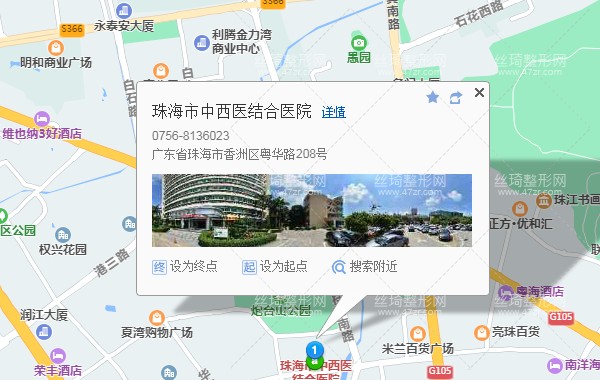 珠海站270米向东步行 到 城轨珠海站2站乘 33路 (上冲检查站方向) 或 1路 32路 2路 到 拱北700米向西步行 到 珠海市中西医结合医院整形美容外科